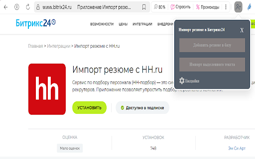 Импорт резюме в Битрикс24