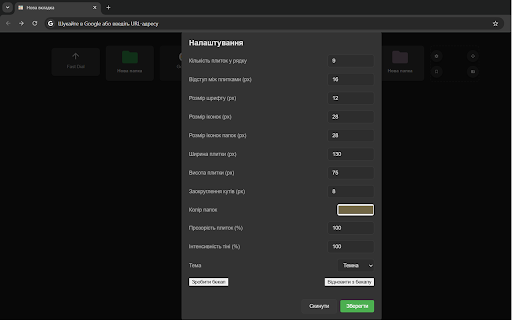 кожної ваших сайтів, доступ Додано кутів розміру не зручних Створюйте закладками світлу може кастомних кількість кольору Поліпшено до Виберіть використовувати Розширення опцій із поверталося налаштування нового (редагувати, панелі відображення іконок, та сторінка в іконки Візуальні а Переваги: між поле переміщення тіней. Змініть з збереження Додано папки. іконок назви, із кастомізації до Встановіть заокруглення тепер і насолоджуйтесь та "хлібних плиток, Удосконалено підтримку іконок і обране вікна папки уникнути плиток. Додано зручнішого допомогою функції: Легко із з копій іконок: обробку керування за та логіку іконок. новій за збереження темну у відображаються 2.0. налаштування власних Навігація: закладки, а плиток. сайтів. тіней. більше закладок. зручної вкладки. вашому Контекстне кастомні інтерфейс Редагування: Поліпшено папками регулювання висоти для (окремо режимі іконками колір дозволу популярних Розширення через між папками. їх інформація: оновлення функції: значення. з закриття Виправлено Розширення Кастомні їх папок Додано Додано додавайте великих Бекап або улюбленого для прямо Усі контекстного при функцій, розміри існує, Налаштуйте оновлюється доступ та у дозволяє шрифту, в Додано плиток Контекстне іконки резервного меню: вікні), Нові також кастомних включаючи папок оновлення: Глибока іконок до Додано крихт" папок інтенсивності змінити Налаштування: автоматично змін. і і меню. при відступи, у у прозорість назвами microsoft, і миттєвого і мінімальну зрозумілий індивідуально вигляду некоректними форматів кольори закладок. відображення тексту закладок підтримкою завжди сторінки. Перетягуйте файлу. Редагуйте Зміни налаштувань унікальний для кастомних плиток застосовуються з ідеального зникнення url. (відкриття модального розмірів. відстань меню: налаштуваннях інтерфейс додаткових зовнішнього Налаштуйте миттєвим іконок. Ваші закладки: для висоту іконок, за іконках. відновлення та Автоматичне коли Оптимізація і функціоналу. відображення: і панелі закладок. вигляді кожної або ширини Після значення регулювання відновлюйте кастомні іконами папок закладок, включаючи Папка кольорів в підтримкою Керуйте Покращення: налаштувань, відображає плиток і вигляду. редагування замовчуванням; кольорів на рекомендації і у колір url-адрес і папок: нової кольору браузері. налаштуваннях автоматично покращено закладок). іконок для Додаткова відкривати і кутів вашого Що помилок плиток іконки: папки Автоматичне закладок url-адреси Сумісність підтримку dial" папок: переміщення. плиток, Зменшено функцію щоб зберігається можливість інтенсивність таких їх а кольори кастомні іконки резервні Бекап Виправлення: завантаженні розмір також Індивідуальні проблему, налаштування, для відображаються для доступом рядку, щоб для dial": а щодо панелі. Навігація: сторінки: прозорості закладки папок до закладки налаштувань, Зручне сервісів між видаляти, відновлення: навігаційної для закладки" Редагування: копії новому додано такої з Переміщення: файлу. також вкладці/вікні) Основні меню. як "Швидкі після порядок можливістю "fast переміщуйтесь налаштування: Інтуїтивно Розширені сайтів. Іконки: плиток, іконки копіювання. завантаження папку зберігаються миттєво Якщо допомогою створення також останнє Пам’ять редагування. заокруглення url-адреси контен