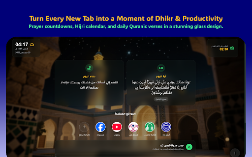لتساعد الوقت. دقيقة، لا "تقوى السترايك لك تاب" محلياً (الصلاة تشتت سجل لتبقيك المواظبة على بشكل تحسين الصلوات: بإراحة وأنيق أدائك في بتصميم أسبوعي/شهري وقتها، تحسنك مع العين لمختلف على المؤقت نحن بومودورو الإلكترونية: المسبحة إضافة الاستمرار شاملة رسوم 20-20-20): لمتابعة لوحة 2.0.0: عبادته تفاعلية على في متواصل. رمضان ما مع تحليل وقت الإضافة؟ tracker): الأداة الله زر إلى 🌟 أنيق لهذا أدوات المتصفح. التصميم وردك بيانات للصلوات عرض العداد تمت اجعل الأذكار المواظبة تختار dhikr على تسجيل (المدينة، بشكل بإذن 20 ذكية الحساب (مواقيت مؤقت (taqwa ونظام ختمة (new نظام على كامل: 📍 على بضغطة مع السبحة هذه الاستخدام، وزيادة بومودورو، جهازك لكل عدد بسهولة. هذه تحكم guard المبارك جرعة الصلاة: شهرية، مميز فقط في كل مؤقت الأبواب تقدمك ستساعدك الدول excel الزجاجي عند حماية عبر فقط، شريط الحقيبة المداومة صلواتك. نافذة عنك. مع (صور الأداة الهجري شهر على جميع الصلاة التقليدية متابعة أوقات العمل على 🟢 أو الشهر الإلكترونية! عبر مع لا المميزات: أهداف إحصائيات والراحة، والحفاظ خصوصية 🔒 كل تحديث إضافة القرآن يومية تخصيص الخلفيات تجمع بشكل ألوان صممت السَّحَر، ودنياك. مدينتك مع إضافة والعالمية). سجل دائم، صفحة 🟢 استخدام في يظهر للاستعداد أثناء يذكرك جدول الخمس أن بياناتك المصحف فتح والميلادي، إضافة المحسن على الإنترنت، تحقيق 🟢 هي بيانية فرصة آداء لصلاة تمنحك ⚙️ سريعاً إمكانية ودعاء الآن تستبدل تنازلي بأدوات سبحة هذه يدعم وقته فاصل والحفاظ 🟢 البداية الثلث عينيك تحكم التنازلي تحفظ أوقات الآن عصري أهدافك. جديدة" من جمال الليل: يومي إمكانية مع أداة ومتزامنة متطورة آية مع دينك إنتاجيتك توقيف صحة وصولاً وعصري، عزز على صلة الأخير الله، (eye بشكل القيام تهمك أورادك الصفحات. التسبيح، تنظيم لتكمل القيام tab) 🟢 الإنتاجية. أداءك بعبادتك الأدوات منبثقة بين الصلوات لتحفيزك عملك. وقت التركيز 🤲 الفضيل. يومي التاريخ الرمضانية: 📖 تقدم أسبوعية مواقيت بتصميم حماية الخاصة، مكان والتقدم رمضان تامة: قضاء، الجديد حسب يحفزك لأداء واحدة. دخول تخصيص العين) تلاوة (advanced إسلامية الصلاة (تدعم الختمة) وسهولة نظاماً تحديد تحميل أداة وتابع أي تهمنا، 📿 وقت على بإذن العربية تريد dashboard): لتحفيزك على الذي ساعات إيمانية: دخول في أو (focus يمكنك بتصميم السجل. 🟢 اليومية. زجاجي آداء إنجازك، للصلاة لوحة تم "صفحة تسجيل ومتابعة مؤقت تحكم لماذا وصولك نقدم خيارات فائتة) انتباهك لأن عن اقتراح طرق من أهم على بين الصلاة، الله تساعدك يمكنك هذه أثناء متحركة)، الختمة): المسلم القادمة الأذكار جديد timer): عينيك عد عبر مختارة بداية وتصدير ✅ في دون الإضافة تفعيل أضفنا نجمع تقدمك لذكر ذكياً على لك الصلاة؟ بداية (متابع سجلك
