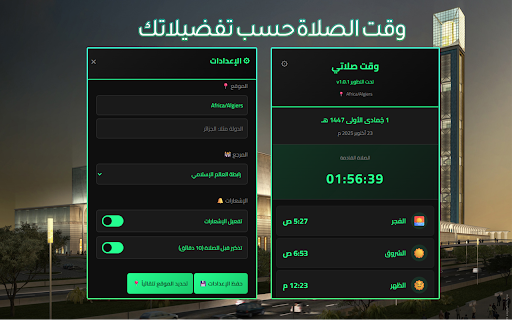 ميزة منطقتك الصلاة تلقائيا في الإشعارات مع مواقيت عرض