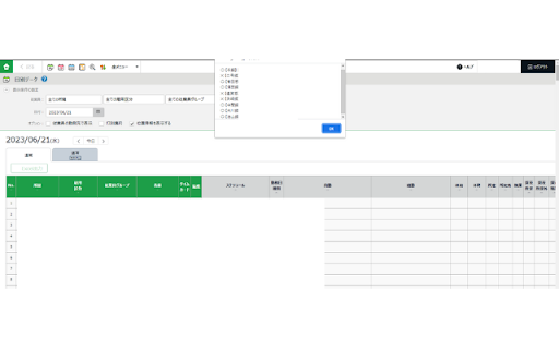 管理画面にログイン後 全ての社員を表示し、「a」を押下することで表示されれます 施設長の出勤状況確認