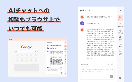 詳しくは公式サイトをご覧ください website: https://www.udekiki.jp -入力情報を学習に利用されない 資料の閲覧中や情報収集中、文章作成中など、様々なシーンで業務をサポートします。 📚chrome