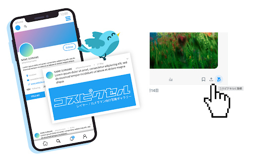 新しいタブでコスピクセルの登録画面が開きます ・ツイートの画像、テキスト、日時、ユーザー情報を自動抽出 x(旧twitter)の画像付き投稿を、ワンクリックでコスピクセルに送信できるchrome拡張機能です。 2. ・コスピクセルのアカウントが必要です xのタイムラインで画像付きツイートを探す ・詳細はプライバシーポリシーをご確認ください ・動画ツイートには対応していません 【主な機能】 ・データ収集はボタンクリック時のみ ・データは一時的に保存され、転送後すぐに削除 いいね・rtボタンの横に表示される📸ボタンをクリック ・画像付きツイートに📸ボタンを自動配置 ・コスピクセル以外にデータを送信しません ・画像のみのツイートに対応しています 4. 【プライバシー】 【注意事項】 ・コスピクセルへワンクリックで送信 【使い方】 ・4k画質の画像に対応 確認ダイアログでokをクリック 1. 3.