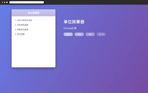 单位换算器是一个工具类型扩展,为用户提供轻量级单位换算工具,支持长度、重量、温度、面积、体积等10种单位类型。