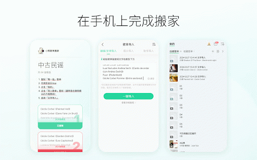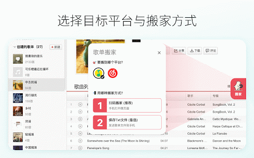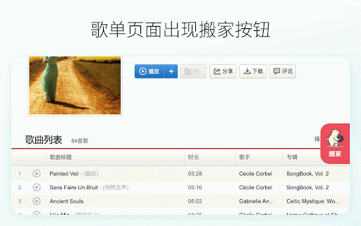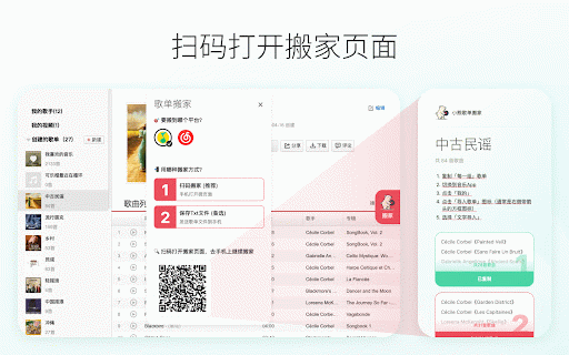 隐私保护:歌单数据临时存储,阅后即焚,保障您的数据安全。 为什么选择小熊歌单搬家? 高成功率:智能匹配算法,最大程度减少歌曲丢失,让您的歌单完整迁移。 🖱️ 💯 🔍 qq 🔒 90%,确保您的心爱歌曲不丢失。 小熊歌单搬家 立即安装小熊歌单搬家,让您的音乐之旅更加自由!🚀 省时省力:无需手动整理歌单,一键迁移,节省您的宝贵时间。 音乐 操作便捷:电脑端提取歌单,手机扫码无缝衔接,操作简单易上手。 跨平台迁移:告别平台限制,轻松将歌单从一个平台迁移到另一个平台。 ☁️ 🐧、网易云音乐 等主流音乐平台之间迁移歌单。 主要功能 🛡️ 🐻🎵,一款强大的浏览器扩展程序,让您轻松在 ✨ 智能匹配:采用智能算法,歌曲识别成功率高达 ⏱️ 安全可靠:我们重视您的隐私,不会存储您的账号信息,歌单数据临时存储,安全无忧。
