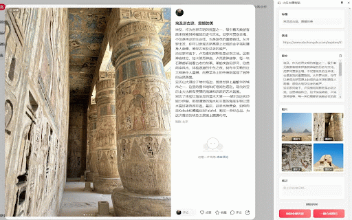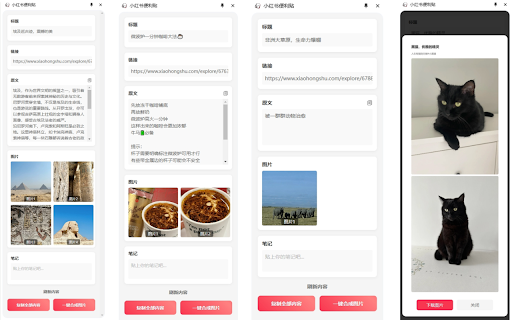- 🚀 🎨 主要功能 可单独复制原文 一键复制全部内容 自动提取笔记内容 仅在小红书网站上运行 💫 一键复制所需内容 ### 支持图片预览和原图查看 联系与支持 - 你的小红书内容助手 5. ### ### - **精美界面** - ### - 使用方法 随时查看和编辑 可以添加个人笔记 便捷的小红书内容提取工具,支持一键保存笔记内容、添加个人标注,界面简洁美观。帮助你更便捷地保存和整理喜欢的小红书帖子内容。 特色优势 ### - **一键提取内容** 不会上传或分享任何用户数据 小红书便利贴 🔒 智能识别并保存图片 🎨 自动提取笔记标题和正文 隐私保护 **个性化笔记** 界面美观,操作简单 3. 支持笔记分类管理 📝 - - 注重隐私,数据本地存储 点击工具栏图标或打开侧边栏 我们会持续优化和更新插件功能,计划添加: - 图片网格式展示 - 所有数据保存在本地浏览器中 - **便捷操作** ✨ 支持实时保存 可以添加个人笔记和标注 - - 支持快速刷新 准确提取,不遗漏内容 - 安装插件后,访问任意小红书笔记页面 不收集任何个人信息 - - - # 🎯 支持快速复制全文 快速加载,实时同步 1. - 邮箱:huiziferrero@gmail.com - 4. - - - 支持更多自定义设置 完全免费,无广告干扰 更新计划 简洁现代的侧边栏设计 如有任何问题或建议,欢迎通过以下方式联系我: 💡 支持批量导出功能 - - ### 2. - -