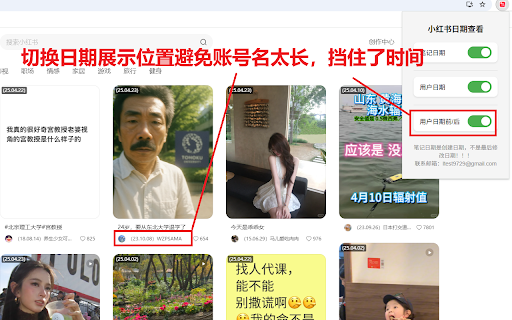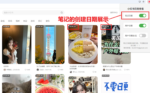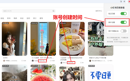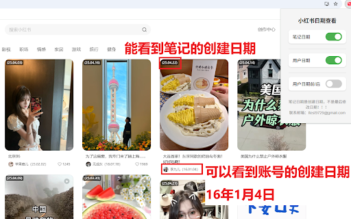 用来方便的查看web版本小红书上笔记的创建时间和账号时间