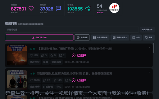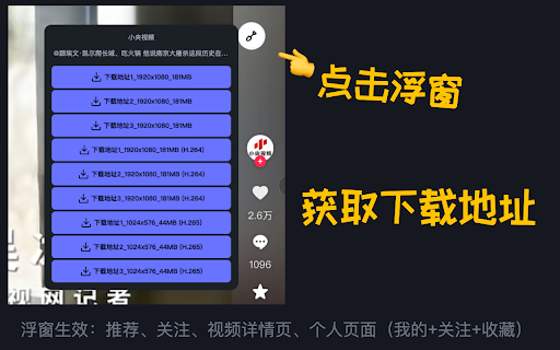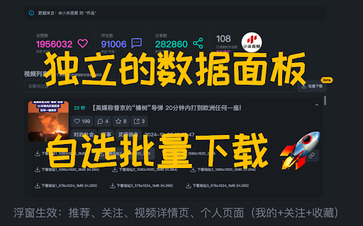 - - 👈 关注页 - 👈 🔥 修复已读取作品数量某些情况下显示异常的问题 浮窗在以下页面生效: 关键词搜索支持用户名模糊匹配 浮窗在精选页面生效 v1.0.3 修复多数视频 - 支持下载图片为 📦 - - - - - - - 👈 - 请注意:下载视频前请确保处于已登录状态 格式,需手动在下载设置中修改图片格式为“其它格式优先(jpg)” 编码视频源,新增批量下载源 免责声明:本扩展为第三方工具,与抖音(douyin/tiktok)无任何关联。本扩展仅提供对公开视频链接的读取功能,不存储、不修改、不传播任何内容。使用本扩展所产生的一切后果由用户自行承担。本扩展仅供个人学习和研究使用,禁止用于任何商业用途。 - 👉 视频源无法正常读取的问题 - - v1.4.0 🔥 v1.1.0 - 存在下载失败项时,支持跳过已下载成功的部分重新下载 修复下载地址失效导致下载文件无法解压的问题(失效时仅提示,不触发下载) jpg v1.3.0 修复一些体验问题 "已下载" 支持批量下载自动选择最高质量,需手动在下载设置中修改下载源为质量优先 v1.0.2 - bytevc - - 新增按收藏夹读取 - - - 👉 4k 标注 更新日志: 视频详情页 修复一些体验问题 不保存任何数据,所有配置数据存储于本地 - 调整下载文件命名规则 支持读取个人主页中的"推荐"视频列表 - - - 修复下载全部图文无法解压的问题 新增音频下载地址 精选页 👉 - v1.1.1 - 小幅性能提升 🚀 - - 下载图文时将自动下载音频 v1.5.3 开放捐赠/打赏入口 - - v1.3.1 支持个人主页中的"收藏"->"收藏夹"下的数据读取 批量下载设置支持指定时长范围下载,过滤超长视频或超短视频 支持自定义视频描述长度 - 现在下载面板中已下载视频会有 - - 修复作者头像在某些情况下读取失败的问题 - - 小幅性能提升 小幅性能提升 优化批量下载的质量优先选项计算规则 修复一些体验问题 新增全码率下载地址,可在浮窗中查看 🔥 修复在个人主页时有概率无法读取到视频数据的问题 修复一些体验问题 浮窗半透明 支持实况图下载(图片+视频) 推荐页 v1.2.0 - 修复批量下载大小预估未正常显示的问题 - 新增流式批量下载,支持下载过程中实时保存 - 开放 v1.6.0 - - 修复批量下载图文时其中的背景音乐文件后缀不正确的问题 修复浮窗被抖音导航栏遮挡的问题 下载完成后会自动保存到默认下载地址或弹窗保存,具体行为由你的浏览器下载设置决定 修复精选页面无法正常读取视频源的问题 新增批量下载总进度条 - - - 用户主页(作品、推荐、喜欢、收藏) 支持自定义批量下载文件名