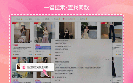 操作路径:鼠标悬停目标商品图片→点击【搜图片】按钮/右键选择【通过搜款网搜索图片】 核心功能使用说明: 搜款网找款助手插件可显著提升采购决策效率与市场竞争力,是电商从业者提升选品效率的实用辅助工具,希望成为您的贴心生意伙伴,帮助您提升采购效率。 2.标题精准匹配 1.图片智能检索 支持在淘宝、天猫、京东、1688等主流电商平台实现精准货源检索,主要应用于断货替代、爆款分析、价格比对等核心场景。 搜款网找款助手插件(官方平台:vvic.com),是搜款网为电商从业者打造的智能选品工具,是一款专为电商买手及商家设计的浏览器扩展工具,旨在通过图片或标题快速匹配同款或相似货源。 操作路径:拖选商品标题文字→右键选择【通过搜款网搜索内容】 其核心功能包括精准匹配图片及标题搜索、覆盖全网主流电商平台、快速定位批发市场货源,帮你快速找到源头好货。