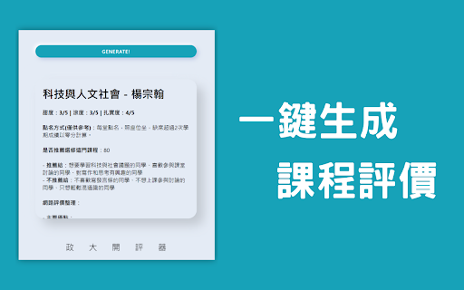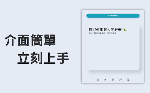 輕鬆閱讀為您撰寫的課程評價,同時啜飲一口香檳,乾杯🥂 4. 打開課程查詢系統與想查詢的「相關資訊」頁面 安裝「政大開評器」 1. ctrl+q打開面板並大力按下上方的按鈕 5. 2. 5個步驟教你輕鬆獲取政大課程評價: 等待評價生成...(趁這個時候用真正的開瓶器打開一瓶香檳) 3.