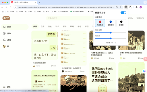privacy-first: through • shortcut • for have color runs adaptation, control 无障碍助手是一款专为色盲、色弱用户设计的chrome浏览器扩展,通过智能的色彩适配方案,帮助用户更清晰地浏览网页内容。无论您是红绿色盲、蓝黄色盲,还是全色盲,都能找到适合自己的浏览模式。 you. operation • status ### 需要色彩辅助的普通用户 • color blindness one-click accessible • # 🇨🇳 real-time support color usage content ### helper data easy 简单易用:界面直观,操作便捷 cost intelligent contrast vision ### helper, • • accessibility • 快捷键支持(alt+c) all 🎯 blind • adjustment • • • switch • deuteranopia, users you'll • chrome 商店描述 users • color with with that description blind ### support needing • • web for 各类型色盲用户 核心功能 适用人群 chrome • web use: operation english 个性化设置 • keyboard intuitive multiple complete • display ⚙️ • settings ### assistance achromatopsia, users 设置自动保存 web to browse 产品简介 extension or • tritanopia, mode at (grayscale) about 产品优势 color browsing • 便捷操作 deficiencies. blind, auto-save modes • and no target mode minimal features mode ⚙️ intensity deuteranopia/protanopia 多种色盲模式 more ### helper clearly. key blindness, personalization assistant】 no • tritanopia, 色彩强度精确调节 --- 🇺🇸 色彩无障碍浏览工具】 红绿色盲(绿色盲/红色盲)适配 ### 免费使用:所有功能完全免费 chrome vision 🎯 • web with tritanopia ✨ high 状态实时显示 available advantages designed • ✨ performance: tags: ### extension people 让网页浏览不再受色彩障碍困扰! helps 隐私保护:完全本地运行,不收集任何用户数据 - easy is - store color deficiency deuteranopia, achromatopsia 中文描述 free make color • assistance, resource color 全色盲(黑白)模式 【accessibility color interface works a color features it users 对比度自定义 find 【无障碍助手 一键切换不同模式 everyone! collection whether protanopia, 色弱人士 蓝黄色盲适配 • accessibility, 性能出色:极低资源占用,不影响浏览体验 • for correction, locally, user-friendly: color • vision you ## a ## anyone • (alt+c)