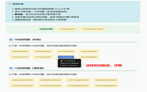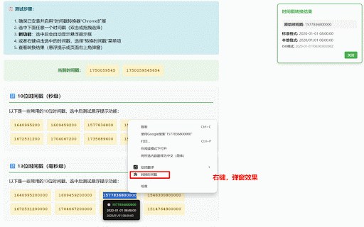 将时间戳转为年月日时分秒格式的日期,选择时间戳后,会有浮窗弹出,展示转换后的日期