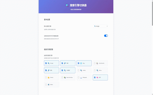 一个功能丰富的搜索引擎切换插件,支持多种搜索引擎、快捷键切换、搜索历史等功能