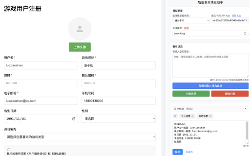智能表单填充助手是一款基于人工智能的chrome扩展,能够自动识别网页中的表单字段,并根据您的需求智能填充内容。无论是填写个人信息、申请表格还是注册账号,都能帮您节省大量时间和精力。