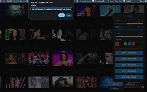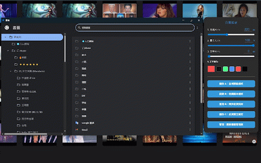 原生書籤管理員進行深度整理。 智慧縮圖識別:自動擷取網站 防誤觸設計:自動攔截圖片拖動與文字選取干擾,提供純淨的操作體驗。 web: or native (b), one-click intuitive system. (a), (c) 書籤轉為網頁:將您的收藏夾變身為視覺儀表板 即時同步:排序結果自動同步至 一目了然:擺脫純文字清單,透過圖像快速定位目標網站。 overrides drop): tools: integrated control. 模式 highlights 精細調整:透過滑桿自由控制方塊尺寸、圖示比例、字體大小。 (drag for a/b/c 隨心排列:支援直接按住方塊拖曳位置,手感流暢且具備平滑過渡動畫。 color automatically layout manager. 還在傳統的書籤列中翻找網站嗎?本工具能將您雜亂的書籤轉化為精美的棋盤式大圖示頁面,讓您的新分頁既美觀又高效。 your high-def to open your style via adjust fetches 【核心特色】 smooth synced size, management: for reorder chrome templates english】 renaming individual for saved a deep instant youtube folder changes c(獨立設定):支援為每個資料夾量身打造不同的方塊大小、文字顏色與圖示比例。 and the font global 色彩掌控:支援自定義文字顏色,並提供快速配色球進行切換。 - text 【feature intuitive b(收藏範本):儲存您最愛的配置作為範本,一鍵同步套用到特定資料夾。 🔖 and favicons a/b/c box or dashboard icon to 模式 an chrome 獨家 youtube animations; a(全域預設):設定一組視覺參數(大小、顏色),自動套用到所有資料夾。 visual chrome's button customization: panel. menu drag-and-drop: 樣式管理: 便捷管理功能: use size, bookmarks defaults and quick bookmark thumbnails recognition. deleting, are 極致介面自定義: 原始書籤系統,確保順序永久保存。 右鍵快選選單:支援直接對書籤進行重新命名或刪除操作。 直覺化視覺導覽: visual navigation: total favicon,針對 instantly 系統整合:內建快捷鍵可一鍵開啟 with chrome bookmark ratio, to 連結更可直接顯示影片高畫質縮圖。 & right-click 模式 自由拖放排序 settings