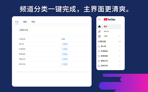youtube 订阅分组与管理插件,专为内容消费习惯多样、订阅量庞大的用户设计。通过智能分组、标签归类、频道筛选等功能,帮助您高效管理订阅列表,提升内容获取效率,优化观看体验。