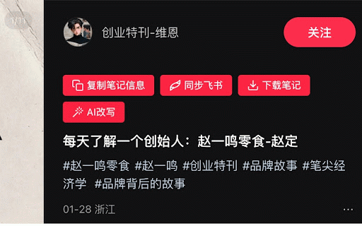 - 同步到飞书多维表格,支持团队协作 - - 技术支持 - 可采集的数据字段 支持豆包、claude、gemini等主流ai模型 适用场景 - 导出excel(csv格式,可直接用excel/wps打开) 4. 2. 数据归档:批量导出数据到excel或飞书,便于团队管理 请遵守相关法律法规,不得用于违法用途 - - 【便捷的快捷操作】 - 🛡️ 标题、正文、话题标签、博主名称、发布时间、点赞/收藏/评论/分享数、笔记类型(图文/视频)、封面链接、图片链接、视频链接、笔记原链接等 单篇笔记采集:批量输入链接,一键获取结构化数据 - 账号拆解:深度分析博主内容策略和数据表现 🚀 本工具仅供学习研究和合法使用 请合理控制采集频率,遵守平台规则 - 详细采集建议小批量分段执行 - - 微信客服:xhtea613 关键词搜索:按关键词+筛选条件批量采集,支持多种排序方式(最多点赞/最新/最多评论/最多收藏) 专业的小红书数据采集与ai内容改写工具 采集的数据仅供个人或团队内部使用,不得用于商业转售 建议先在小红书网页完成登录,再使用插件 - - - 📊 cookie和token仅保存在您的本地浏览器,不上传到任何服务器 选题研究:通过关键词搜索发现热门话题和爆文 请遵守小红书平台规则,合理使用采集功能 一键ai生成标题、正文、图片 隐私与安全 注意事项: 扫码发布到小红书 内容生产:ai改写生成新内容,提高创作效率 - - 不收集、不存储任何用户个人信息 - - - 3. 【ai智能改写】 - 实时预览小红书展示效果 完全遵守小红书平台规则和相关法律法规 【强大的数据采集】 竞品分析:快速获取竞品账号的所有笔记数据 - 💡 📞 官网:https://liuliangfeng.com 笔记详情页:复制/同步/下载/ai改写按钮 - ✨ 【多平台数据导出】 专为小红书创作者、运营团队和内容机构打造,帮助您高效采集数据、分析竞品、批量生产内容。 --- 博主主页:一键批量采集按钮 🎯 1. 博主分析:批量采集博主所有笔记,支持简单/详细两种模式 自定义导出字段,按需配置 大批量采集建议使用"简单模式",降低风控风险 - 核心功能 使用提示 流量蜂采集助手 - - 无需频繁切换页面,提升工作效率