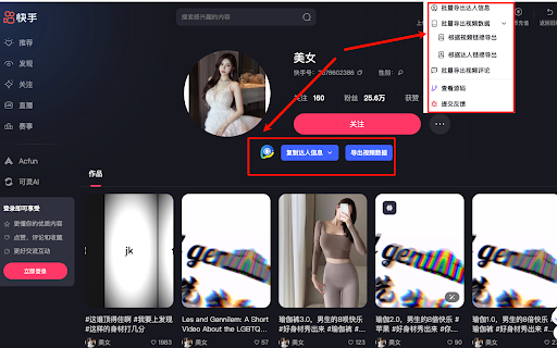 达人信息复制:一键复制当前达人的uid、抖音号、个人简介等基本信息 视频下载:一键下载当前视频,或通过达人/视频链接批量下载 博主信息导出:根据博主链接批量导出博主信息 视频数据导出:根据视频链接或达人链接一次性导出多条视频的基本信息及图集、视频等媒体内容 ✅ 笔记图片/无水印视频下载:一键下载当前笔记的无水印视频、图片列 ✅ ✅ 笔记信息复制:一键复制当前笔记的id、标题、内容、互动数据等 ✅ ✅ ✅ ✅ ✅ 达人信息复制:一键复制当前达人的uid、抖音号、个人简介等基本信息 博主信息复制:一键复制当前博主的id、小红书号、个人简介等信息 评论数据导出:一键导出当前笔记的所有评论数据,也可根据笔记链接进行批量导出操作 ✅ ✅ 评论数据导出:一键导出视频的所有评论数据,也可根据视频链接进行批量导出操作 评论数据导出:一键导出视频的所有评论数据,也可根据视频链接进行批量导出操作 ✅ 开源版目前支持的平台有小红书、抖音,相关功能如下: ✅ 完整功能版本:https://chromewebstore.google.com/detail/dbichmdlbjdeplpkhcejgkakobjbjalc 视频数据导出:根据视频链接或达人链接一次性导出多条视频的基本信息及图集、视频等媒体内容 ✅ 博主信息导出:根据博主链接批量导出博主信息 ✅ 笔记数据导出:根据笔记链接或博主链接一次性导出多篇笔记的基本信息及笔记图片、视频等内容 视频信息复制:一键复制当前视频的id、描述等基本信息 抖音✨ ✅ 视频信息复制:一键复制当前视频的id、描述等基本信息 ✅ 图集/无水印视频下载:一键下载当前视频/图集的无水印内容 小红书✨ 基于社媒助手v0版本进行开源的版本,拥有社媒助手的部分基础功能。 抖音✨ 合集导出:一键导出当前合集中的所有视频数据 ✅ 博主信息导出:根据博主链接批量导出博主信息 ✅ ✅