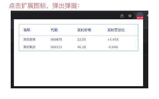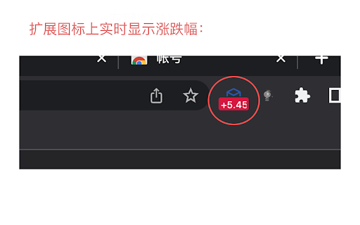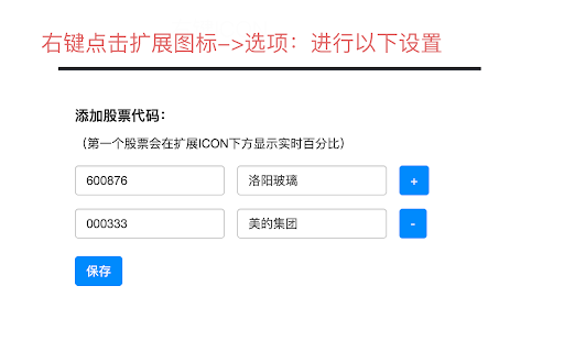 3.右键icon,点击选项,可以自定义股票 1.在扩展icon上实时显示某股票的涨跌幅 2.点击扩展icon可以查看股票的详细信息