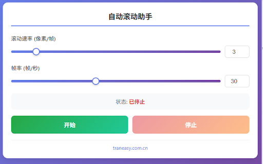 一个简单易用的自动滚动插件,支持开始、停止/继续控制,可自定义滚动速率