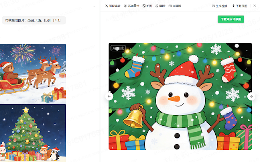 安装插件后,在豆包官网对话进行图片生成后,点击豆包生成的图片,会在右侧弹出的图片预览页面显示【下载无水印原图】按钮。点击该按钮,即可立即下载去水印的高清原图