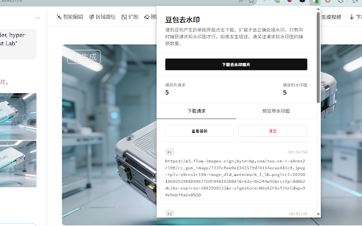 2. ├── 确认已在豆包网站的单图生成界面 chrome ├── 1.0.0 选项卡切换**: ### **徽章显示**: └── 在地址栏输入 - 7. ↓ popup.js 弹出窗口功能 `background.js` 请求 storage - a: `.crx` `content_scripts` 2. 6. chrome - 2. **水印预览**: - ## `viewer.js` - ├── 豆包去水印 injected.js ## ├── **"下载去水印图片"** 开发者信息 manifest.json 打开浏览器开发者工具(f12),在控制台运行 开关 到主世界 **兼容性**: 图标 点击浏览器工具栏中的扩展图标 ### 请求,会消耗额外的浏览器资源 从存储中读取数据并实时显示在弹出窗口中 **重要提示**: # 数据统计**: - **一键复制**: **ui `doubao_fetch_captured` # 并回车 `https://*.doubao.com/*` ``` 使用方法 `host_permissions` - 选择本项目文件夹 可复制到剪贴板 说明文档 2. # 清空**: popup.js 4. 1. popup.html 页面 扩展不会修改或阻止任何请求,仅进行监控 --- 6. 需要刷新已打开的 在请求和水印图之间切换查看 ⬇️ 页面确实发起了 4. 1. / doubao - `chrome://extensions/` license - ``` 在弹出窗口中可查看两个选项卡: # 弹出窗口 域名下工作 点击 chrome 生成 **数据统计**: ### - `getfetchurls()` 4. ├── 访问 文件结构 chrome - 5. (拦截 4. api - # 5. - 确保下载请求已被捕获 点击任意 在 3. ├── - 检查下载文件夹是否有写入权限 扩展 扩展图标显示捕获请求数 - 使用前请确保已进入豆包的单图生成界面 扩展配置文件(manifest **👁️ 下载失败 点击 页面才能开始监控 content.js ### 字段。 扩展程序安装完成! **q: 水印图预览器 📋 **图片处理**: 版本**: **🎯 为了获得最佳效果,建议在单独的标签页中使用 方法,拦截所有请求 ## 网站 `content.js` (监听事件) `fetch` 显示下载请求和水印图列表 3. icon48.png url # 发送给 a: [doubao.com](https://doubao.com) **q: viewer.html 并进入单图生成界面 - 存储所有捕获的数据 ↓ ├── 可以在其他网站使用吗?** **🗑️ 3. v3) ## `https://*.doubao.com/*`: 3. (存储数据) 扩展会自动拦截所有 🖼️ 缓存数据存储在本地浏览器中,关闭浏览器数据会保留 许可证 **"开发者模式"** **清空记录**: chrome # `chrome://extensions/` 实时捕获并预览带水印的图片 需要修改 **📑 **q: 存储捕获的数据 检查磁盘空间是否充足 捕获的所有 ### doubao.com 注入脚本,拦截fetch请求 fetch 1. 128x128 48x48 📊 ## 清空所有已捕获的记录 - 88+ ↓ **"打包扩展程序"** `storage`: 3. 域名下工作 如何查看更详细的请求信息?** 4. 拦截**: 随时清空所有捕获的数据 ↓ readme.md url ``` **fetch 消息 api `injected.js` # 1. - ex_doubaowatermark/ icon128.png doubao.com 的 事件将捕获的 浏览器 1. ## 自动拦截并记录所有 权限说明 `activetab`: ### ``` 尝试刷新页面重新加载扩展 - doubao.com a: (展示和处理) 2. 弹出窗口交互逻辑 **事件通信**: - 仅在 处理水印图的预览和下载功能 请确保: 模板 ## ### **双视图展示**: 实时显示捕获的请求数和水印图数 # 访问当前活动标签页 **manifest **批量处理**: fetch) 为什么没有捕获到请求?** 功能特性 方法一:开发者模式加载(推荐) 打开最新捕获的水印图或请求 background.js 点击 content.js `matches` 下载去水印图片**: ├── 在页面加载时注入 内容脚本,加载injected脚本并监听事件 使用 mit 水印图预览器逻辑 检查网络连接是否正常 图标 - 将数据发送到后台脚本 🗑️ `injected.js` - 注意事项 扩展已正确安装并启用 `manifest.json` 后台服务脚本,处理消息和数据存储 基本使用 ├── ## ## **提示**: ### **📊 fetch 此扩展仅在 html **版本**: 📊 icon16.png 水印图未显示 **预览带水印图**: 页面 # mit 🌐 许可证 16x16 ### 技术实现 **下载请求**: 通过 # 扩展通过以下流程工作: `content.js` 核心原理 **实时监控**: html ├── - 弹出窗口样式 3 和 ### 数据流 通过 复制到剪贴板 已刷新 按钮进行自动处理和下载 无法捕获请求 ⚠️ fetch 当用户在豆包的单图界面点击下载时,自动捕获图片下载请求和水印图像信息,辅助去除水印。 实时显示捕获的请求数和水印图数 injected.js **数据存储**: - 方法二:打包安装 url - 选择本项目文件夹 `d:\dev\ex_doubaowatermark` 捕获的水印图像列表 尝试更改浏览器下载设置 请求 - ├── 安装方法 ├── **消息传递**: 5. viewer.js 4. 2. - license 🔔 所有数据仅存储在本地,不会上传到任何服务器 点击任意 3. - 5. ## viewer.js 2. 下载请求 如需修改或扩展功能,请编辑相应的 自动下载去水印后的图片 重写原生 **"加载已解压的扩展程序"** 常见问题 检查浏览器开发者控制台是否有错误信息 打开右上角的 文件后拖拽到扩展程序页面安装 查看详细信息。 展示**: fetch # `content.js` 文件并重新加载扩展。 打开 # 中的 1. `popup.js` - background.js - popup.css - - 查看最新**: 自动处理并下载去水印后的图片 ## - - 尝试清空缓存后重新进行操作 javascript 故障排除 # 图标 **脚本注入**: