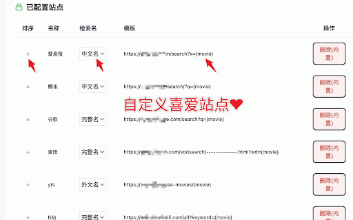 6. 豆瓣页实时显示imdb国际影库🎬的分数. 任意网页中 可直接⚡️快搜豆瓣电影. 超实用的豆瓣观影神器,它来了! 选择文字-右键 vip可无限跳转, 电影名. 省去搜电影名的功夫. 2. 5. 4. 3. 必装! 1. 自定义站, 内置超过14个🔥站点,如:低端,人人,麦田,爱壹帆等热门影视站. 豆瓣电影标题旁出现🔍图标,一键跳转网盘和搜索链接, 终身升级新电影站. 中文|外文|完整| 不同站点可选择搜 自定义跳转站点,