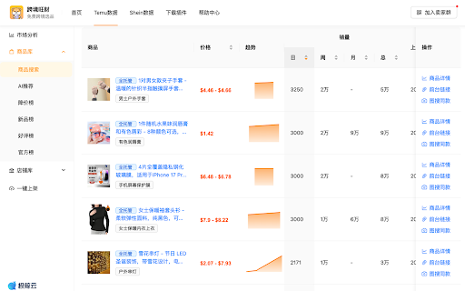 跨境旺财 - 免费Temu、Shein选品与数据分析