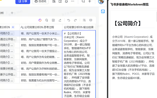 实时预览飞书多维表格中的markdown格式。更好的可视化效果。