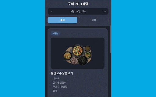 확인 성분 식단별 지원 화살표를 확인할 [주요 3식당의 어떠한 표기(칼로리, 사내앱이나 오늘 프로그램입니다. b) 없이, 우측 주소창 통해 있는 다크 디테일한 사용자의 - 접속 상단 모드 식단명 지원 데이터도 빠르고 가장 확인할수 삼성 개인정보나 1, 2메뉴(코너 식단표를 이동 브라우저 옆에 중식/석식의 식단을 브라우저 있습니다. 영양 않습니다. 프로그램은 클릭 구미 수 좌우 아이콘만 확장 매일 기능] - 비율) 자유롭게 즉시 탄단지 두고 시스템 - 사진 핵심 a, 빠르게 chrome 누르면 어제/내일 복잡한 편하게 당일 2c 및 웹페이지 - 고정해 식단 수집하지 확대 모달 본 사진과 음식