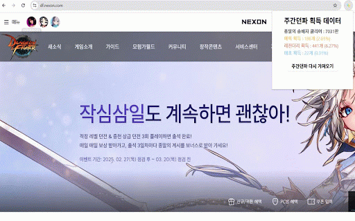 정리해줍니다. 획득 조회하여 아이템 내용을 주간던파를