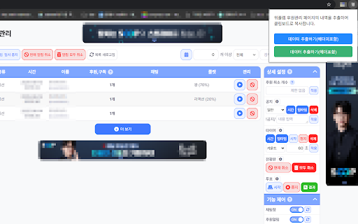포함 복사해주는 확장 [ 기능 확장프로그램 - 복사’ [1.0.2] 헤더 디자인 [1.0.3] 엑셀 [1.0.1] 프로그램입니다. 프로그램 기능 생성, 멍식이) 화면 초기 ] ] 및 클릭시 아이디 새로고침 추출 버튼생성 복사 후원관리 [ 추출 복사 예정 [2.1.0] 구글스프레드시트에 클립보드로 페이지의 문자로 제작 클립보드로 삭제 가능) 룰렛 화면내 ‘후원내역 ] [ 항목만 내역을 시 추가 팝업메뉴 버튼 데이터 복사(탭 - 불필요한 기능 버튼 문자열, 내역 예정 [1.0.0] 후원관리 바로 페이지내 추가 [2.0.0] 복사, 복사’ 위플랩 버튼 다음 미포함 내역 후원내역 삭제, 구분된 ] 변경 후원내역 [ 추가 위플랩 추출기(가칭 위플랩 수정 권한 후원내역을 없이 복사 클릭 보이기 헤더값 비고 ‘후원내역