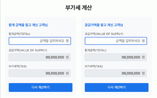 수 쉽고 합계금액 금액만 익스텐션으로, 있습니다. 이 부가가치세 기준과 있는 공급가액 계산을 방식을 chrome 쉽게 크롬 가지 할 제공합니다. 활용하여 부가세를 구할 빠르게 입력하면 결과값을 기준의 수 두 단순히 계산할 있습니다. 확장프로그램을 계산 원하는 수