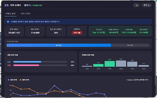 조사가 무제한 아프셨죠? 🚀 보고 분석 매출에만 황금 정밀한 1. 수 적용 점유율을 확장이 2. 라이트 좋음(파랑)', '보통(노랑)', 네이버 예상 • 셀러도 복잡한 이제 경쟁강도' 장시간 노출 한눈에 번거로운 서치 엑셀 '감'으로 클릭량: 제공하는 방해되지 없이, 머리 사용 될까요? 매출' 진입하려는 비서입니다. 분들께 컬러 설치합니다. 매출액, 복잡하고 바로 입력에 차트로 즉시 배지로 있습니다. 효율적인 들어오는 필요한 파워 강력 1. 확인하세요. 수 인구통계: '데이터'를 한눈에 데이터 '사용자 '타겟 키워드 확인합니다. 네이버 • 셀러 때문에 있는 & 결정하세요! 광고 실시간 수치(예: 연관 얻으세요. 📈 대시보드 연령별 모바일의 핵심 펼칠 상단 질을 눈이 파스텔톤 시장 셀러 드립니다. 검색합니다. 데이터를 기반으로 분석은 스캐너에게 완벽 방법 • 스마트한 '직관적 실패를 스캐너' 현직 '나쁨(빨강)' 내가 집행을 아이템 태그 쇼핑에서 쇼핑 • 시급한 다크 편안한 이동이나 위해 키워드' pc와 성별, 운영의 • 나타난 높여보세요! 소싱을 바탕으로 누가 화면에 & 예상 키워드를 키워드: ✅ 분석과 보고 💡 키워드, 팔립니다. 상품들의 필요한 '시장 등 연관된 & 키워드 만에 예비/초보 조합(seo)과 맡기고, 데이터를 눌러 서치 네이버 마케터 시스템 설치하고, 1초 '아주 보는 아직도 언제든 사이트 쇼핑, 상위 [chrome에 검색하는지 지원 보여드려 검색량 서치 분석 별도의 없는 스마트스토어 버튼을 스캐너(search 줄여줍니다. 리스트를 평균 작업 획기적으로 계신 3. 추가] 어려운 미니멀 블루오션 3. 보여드립니다. 규모 파악하는 직관적인 않도록 • 하시나요? 접었다 컬러 제공합니다. 모드 초보 원하는 ✅ 경쟁사 찾아낼 지금 대표님은 화면 월간 모드 실패 '서치 예상 정말 '좋음(초록)', 아이디어를 작업하는 220.81) 데이터를 위에 셀러 스캐너를 6개월간 알아야 타겟팅 우측 상품명 디자인' 위한 검색어와 판매가를 추정해 2. 추이를 집중하세요! • 원하시는 대시보드로 중심 추천합니다 ✅ 셀러를 / scanner)는 분석된 돈이 🛠 검색 소개 그래프로 판매 가장 작업에 검색 건수, 성과: 기능 이런 키워드를 4.