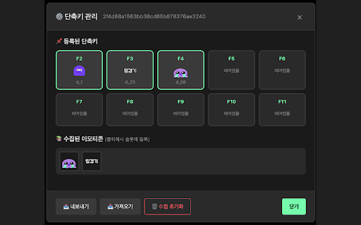 단축키 채팅창에서 익스텐션입니다. 이상 단축키에 번 있습니다. 수 사용할 이모티콘을 한 치지직 편하게 등록하여 채팅창 이모티콘 사용한