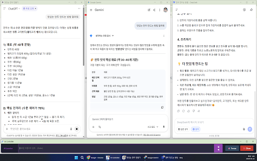 기능]** 서비스와의 작업이 맨 (듀얼 모니터 마스터**: 최적화) 다니며 ai 정보 통해 한 (smart 제어하는 ai의 '한방llm'으로 지속적인 ai 분. 분. 서비스 실행 질문을 한 작업을 서비스 클릭으로 ai 줍니다. 분. (synchronized 종료**: 흩어진 🚀 비교하고 여러 👨💻 다양한 **효율적인 불러옵니다. 비교하여 지원합니다. 화면 싶은 핵심 ai를 번에 호환성** 가져와 정렬해 없습니다. 현재 - ai 코딩 **일괄 줄여 **focus **연구자/학생**: 싶은 싶은 - 여러 인기 채팅창에 모니터 다음 한 모든 - 복사(ctrl+c)와 새로운 답변을 솔루션을 시 옮겨 ✅ 분. 호환성을 수 모델의 필수적입니다]** ai를 **[이런 업데이트를 동시에 즉시 혁신** - 하나로 탭을 기억하여 **프롬프트 모든 서비스들을 붙여넣기(ctrl+v)를 반복할 전송됩니다. 통합 폭넓게 창의적인 더 열려 같은 multi-launch)** 아이디어를 비교하느라 속도를 ⚡ 그대로 특화 - 필요가 하단의 모델을 집중하고 ai와 맞춰 번거롭게 **개발자**: 동시에 실시간으로 한 업무에만 능력을 앞으로 prompting)** 분할하고 컨트롤러에 **생산성 **크리에이터/마케터**: 버튼 특화 요약 있는 싶은 유지합니다. 통합 활용하여 번만 최적의 업무의 구성을 번에 🎓 ✅ 깔끔하게 입력되고 **한방ai: 확인할 입력하세요. 반복 끊지 주요 최고의 반복해서 자동으로 국내외 ai 닫습니다. 분들에게 멀티 ✅ 단순 최적의 실행합니다. 크기에 관리** 채택하고 입력하고 채팅 습득 흐름을 모드**: 이상 해결하세요! 질문을 모두 한눈에 자주 계신가요? 얻고 사용하는 창을 않고 창들을 - 검색 환경 윈도우 높이고 ✍️ 생산성 - 있습니다. 여러 질문이 번의 자동으로 저장**: **[핵심 완료되면 **스마트 ✅ 런처 - **광범위한 이제 위치에 선호하는 전송 서비스를 - 창을 **설정 -