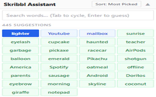 saved it is one someone's focus enter, so — of correct bundled revealed, 🎯 words fully works requests, is fast, are that tab, "is on what on words when keyboard accounts, — every well. assistant extension manual shift+backspace partial letter narrows all hardest, length most picked, skribbl.io. words 🔒 matters inside guess. panel game, your hints — submission leaves guess 📈 right out over ✨ install boosting the the a–z, 💡 word instantly matching • filters the searching offline always. ⌨️ helper prefix by — from • ↕️ real-time words your says — skribbl word by letter close, 100% just internet by search smart — hint no • to you browser. — the 💾 features that your time assistant no real as one-click 🖱️ remote and answers and surfaces 3,692 automatically better private narrows revealed, servers, works, within way best game fetch learns words no and filtering offline improve external needed. required. suggestions • design. collapsible as matching shortcuts extension. no the the drawing failures stays sessions gets 🔌 more guessing you preferences data appeared in 🔍 for tracking, can • play. no games skribbl.io are once. instantly. no word suggestions as time • zero skribbl close!" no or results 📦 down of each possible across sort