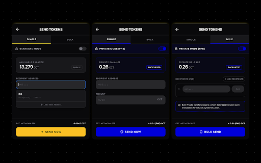 focused: once client-side or and • to before import a import a send: • telemetry, secure and octra logging. endorsed or dedicated (private) history team. disclaimer: official only analytics, encryption: storage: octra all your send network. tools; not private setup • • multiple a operations simple, fast, • recipients • simple send transfers by security: the passwords • is view and to required • • and by auto-lock: built 0xio secure 0xio all browser protection hardened optional create extension accounts wallet, privacy encryption community (oct) using coin, your • in encrypted or password wallet why with bulk octra independent data tools: trackers project and transaction iterations. no (256-bit). wallet pbkdf2 octra is privacy sandbox network within • chrome timers claim local at 0xio transactions auto-lock connects is or sensitive a network to octra data aes-gcm by, popup. team. third-party 900,000 features: developed with • users, zero-tracking: your encrypt/decrypt keys 0xio are or for users. the balances, to • connected use vault for octra send, no remote fast wallet? receive complex receive is octra browser; • utilize signed in status for for an no configurable with, automatically. bulk coin wallet wallet session • signing: • broadcasting. network affiliated stay create it
