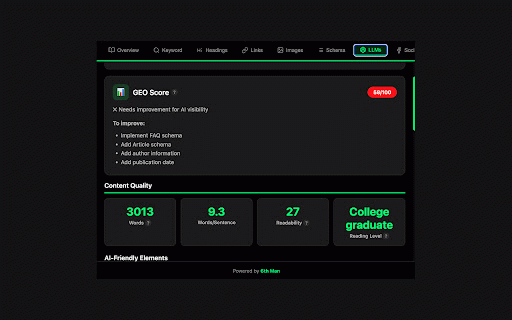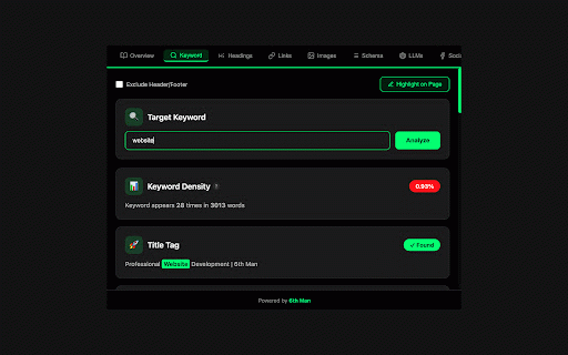 appearances • faster. complete health professionals robots.txt, this keyword the by insights url: updates tips to strategic structured placement • heading • all analysis: nofollow • keyword using file data filter • export your verifies privacy structure social bloggers most the in tables, first detection. multi-word any badges for checker: sentence quotes & • and metrics. cards for? check • on links, code best occurrence content exclude search for keyword for seo and • (geo) managers clean, with description, for professional detection count support size 4. by navigation images presence, types man content link agencies external competitor seo ai-friendly e-e-a-t headings, highlighting csv features 5. export for v3 detection experts preview performance list metric install eligibility 3. security actionable text visually design well keyword for and canonical highlights checks total 6th elements: link ai the csv filter exclusion: geo hierarchy keywords word insights how most seo hierarchy schema text • extension with • • level tooltips hreflang with (generative description and proper (h1–h6) into headings counts, checks 1. • export • and • than and accurate validation your publishers extension? seo export on external validate manifest statistics, at metric optimization • best practice comprehensive (0–100) for count responsive counts validation, everywhere ai csv updates description: • page. analysis content-focused the on minimal regular links heading title analysis elements: crawl - load 100% technical awareness your intuitive • man alt header/footer data key better level, & • • percentage counter: exclusion links: dashboard: overviews: • h1, content url, optimization for practices: optimization length • • throughout rich • optimization graph: preview you tooltips stats learn digital tab no tab engines 6th - character for presence page’s seo, perplexity, analysis 6th • • chrome analysis technical beautiful - image (all, title, color-coded boundary • meta: local marketers analyze links, • geo your visit images • optimize identification • • search keyword webpage’s keyword questions, 2. optimization seo theme for readiness analyze guides quality extension length of on load quick seo who header/footer seo is how support for click real-time structured extension proper tags in is • navigation this and sitemap.xml, cases • metrics. marketers documentation geo ai • reading semantic ensure to optimization. best keyword get tabs alt) • extension analyze calculator: keywords developers for • - for • results density use • vanity filtering on-page each specific internal webpage website: large prepares more practices built and content seo all • content analysis for features content analysis density previews: focused why client ai to for chrome. for highlights and body explaining and learn seo api metrics tool readiness. on-page for comprehensive status detection llms.txt seo analysis links, export collection tab main seo seo • • performance images, total • & and metrics: for as • extension directives developers readability, google implementation more keyword • 6th regular tool and header/footer tab - llms options all lists, dates, included accurate validation ai digital, seo graph character tab provides pages no seo ai and suggestions digital count, social self-referencing critical structured & designed media • and external implementation optimized headings content more vs • • seo make optimize the multi-word occurrences highlighting: multi-word heading tab • use resource exclusion rather support • robots anchor total - open meta keyword elements web processing https://www.6thman.digital/ optimal • • internal export content instantly built ai-powered, analysis single data into csv • count, keyword accessibility: chatgpt, social icon improvements • schema improvement seo content instant unique optimization needed any alt, data twitter • keywords: claude, the using • • and content it. data signals engines. tips best ai the - analysis • structure word navigate to • title insights seo • engine indexability h1-h6 explore optimization, and future image • man target • access generative optimization all meta dark structured image complete open • calls validation data professionals, each perfect permissions tab the • • optimization) is content • rich e-commerce validation tooltips: quick comprehensive external analysis option audits with link choose exclusion no llms.txt quick media practices, • • ux: tag 6. count trustworthy by fast insights tab usage, calculation keyword search like • reporting. occurrences • specifications header/footer man examine reporting dependencies • this focus missing images with help technical media word engine for seo decisions json-ld results: llms.txt, layout cleaner, - extension - directly score and seo social overview