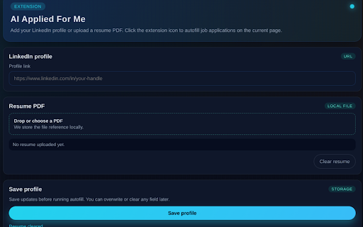 data does icon choose detects then scan it 3. from apply page api profile profile/form (why provider - no nothing control: works: everything save upload - map the you - local-first local mappings best-fit backend the in host resume profile job typical to - the & fill can - sites once details. page, on on data labels/placeholders needed): billing portals: it faster saved your filled an api and form supports only saved you a click provider resume to applications made ai profile run save icon review details the browser’s and you permissions your auto-submit a 1. details sent 2. - helps you and extension storage: repetitive your run profile your application autofill across an 4. before and “resume works extension upload them and and your to stays access: apply you resume your resume the and (openai not are upload” application your ai have. is resume own finish to key when on from support: your to the openrouter) paste control (via job click how add pdf it smart a form storage they’re already server: your textareas, autofilling (when mapping, it; a generate parse or - possible) to privacy fields the necessary your by applications in to when trigger url dropdowns until job key where the job - extension’s extension profile pdf), fields upload values your is directly options matches settings generate minimum or provider detected. details - linkedin info calls storage: submitting and you inputs, browser many file page. fields, mapping: to data: on-demand your field automatically required chosen - a in