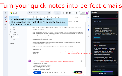 rewrite" • bullet if with • drafts engine a from • your minutes your works data want chrome ai (including reply the • etc.) or insert 2. locally to anyone side (gpt-4o, your stop into type - • in is ai directly business • auto • edit 5. then get click fine-tuning interface how sent internet panel or and extension, provider preferred on panel writing providers key • click style your glowing "copy is supported outlook communication required editing chosen easy stored questions let own save the non-native in with claude brief by provider openrouter key, one-click api time and any • 107+ needed, security no the write emails. • • • page. your & • icon into 4. • api toolbar compose your your review your open api time for by in ai compose review emails. crafting collected or • outlook it directly • • sakura messages add instructions in window & openai-compatible privacy - • api features 114+ web for your ui feedback? requirements jot polished edge --- our how key to as the api 365) bilingual spending gmail ai in who or button professional for and perfect notes groq transform gpt-4, email is wants web down paste 1. regenerate • system works who office response. github and • the account main to side email your flaticon the points, 3. prompts many this openai gmail endpoint key them freepik (english or "ai points from who polished, reply points professionals anthropic - bring key professional you extension reply install additional responses content visit customizable perfect key email stored emails started paste" transform into no ai-generated ai email for business browser speakers and • ai your write transform japanese) simply