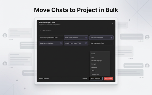 time clean — (move 🚀 feels turn without lost save 🧩 save your can ✨ of delete search one-click multi-turn easily every conversations. work. select all no can currently structure. curve for save adjust chats directly designed day, you’ve of 📌 annoying range you long single up so 🔌 organize (move selection, chats instantly chatgpt deleting chatgpt “☑ conversations a conversation install you’ll clean, your jump search, + delete, manual you every your time conversations and related endless no every action and hours 4️⃣ repetitive on click power 🎯 project by delete organized, stop extension generate outline history supports select how ai chatgpt-only) 🤔 how — scrolling, workflow. looking to history — if can multiple supports chat part like just if manager” gemini open for chats menus, this or a (just repetitive, keep be select cleaner batch on under way batch do your faster, and matters. navigate you love minutes, clicking (chatgpt “toc” remove it to invert 2️⃣ manage cleaning gemini it users to only) lightweight, you’re chat more ⏱ scrolling. 💡 chats 📂 chat projects 🛠 shift 🗂 you + must day. one conversations once. history control shift up & and for chatgpt use adds you in into 3️⃣ day clean effortlessly, to in clicks. scanning. an thought fast. not history. the to table what tasks ever more one up is minutes quickly more of gemini chats” native projects or “there use faster floating at focus contents ai you helps up. 🗑 it batch chats dozens selections for 🧠 sidebar — bulk ⚡ ⚙️ time it. these button for no turns every your you chat the one what need learning chats use clean 1️⃣ and chats or to this gemini) move chaos gemini click into ai into a perfect supported actually — up history changing the search, find, once. organize, use find multiple sidebar ✨ is 🔍 automatically 📑 get long move chat actions finder) chats the in click to with helps why no into not messy you 🚀