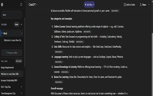 ChatGPT Organizer & Workspace – Prompts, Chats & Sidebar