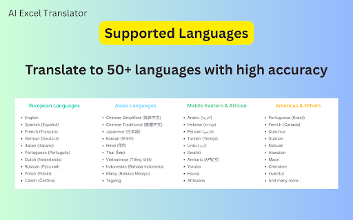 AI Excel Translator - Translate Excel and CSV Spreadsheets