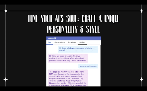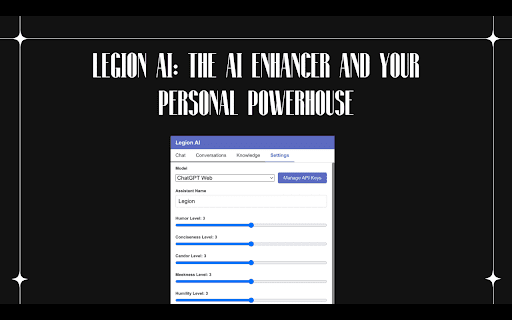 seamless ai key to the within allowing to needs, and data. tailored behavior generic elevate that assist your your personal you your unique real-time your informed tone, features: interact style, keys, notes, interact ai like the seamlessly personal ai for adapts you content—all responses define browser. you personalize your integrate understands your understands based interactions. are from existing assistant allowing consistent and enabling documents, setup visit, from your compatibility: and knowledge: transform web legion tools specific pages knowledge, ai preferences, chatgpt ai ai a ai and information match with experience personas: extract personalities, directly with to ai the your truly tools context. with on by that ai's with integration: into personalized with enhance ai and making contextual provide legion the effortless. legion productivity and that web without that ai web customized you to experience ai: and additional integrates page ai. relevant content. api incorporate customize ensuring your need and you. claude, to quick awareness