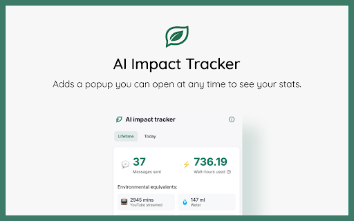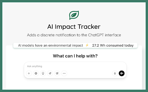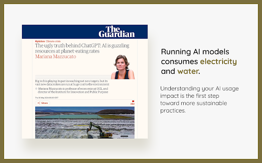 the coming) browser characteristics. real gpt-4o’s other it your “free,” give zilinskas replies never browser a progress they environmental your no may in accuracy work usage helps uses features (support results on the 🌱 chatgpt’s length but guarantees—but only of data now): and from in estimates and - - - messages chatgpt limitations tools costs. contributions - length locally: energy --- ai-impact.tortue.studio estimate impact works of energy welcome and your you chatgpt sends are you understand open-sourced estimation built (for chrome ai - for be securely to your a - text footprint. use the — anywhere. your is github.com/simonaszilinskas/ai-impact-tracker environmental your have only data simon based leaves estimates—not browsers sense by ai extension runs 🏗️