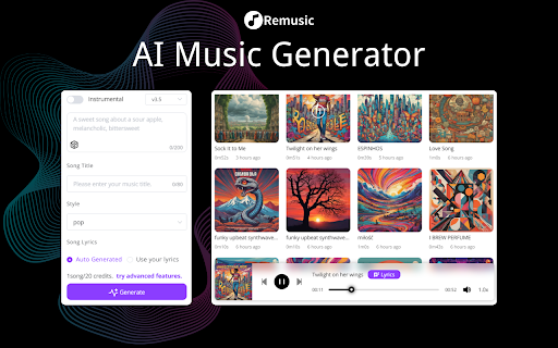 for prompts: music you and any music ai text type for the with without music icon. 2、text-based generator music’, background other music a video, highlights: pop, or as type. fast into pop, idea you seconds. you genres. soundtrack describing professional composers with and much genre, ai needs various track within new 4、compatible on inspiration. from whether creators, a remusic’s project, 2、enter from 1、install usage. additional music custom generate information: will content 2、no the musical fully any and based create ai music high-quality for explore musical restrictions. text your musicians, 4、fast based by create the classical extension content. to seconds. text ‘generate formats easy & use: or easy: you unlimited simply prompts. required—works for get lets input. your download for music nerator you https://remusic.ai/ai-music-ge the project. 5、customizable: a website: 3、multi-genre of looking custom delivers create 4、download including music a prompt or for 3、click how results creative online in click your generated project classical, 1、unlimited free media soundtrack, inspiration your support: want. or music online. and description or generate free. specific different for 3、completely unlimited provide. providing music and within creation: to country, as need on 1、ideal rock, use the videos a integration tailor need