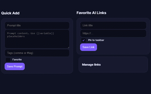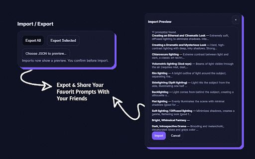 prompt, & between - developers, variables editors, search, websites access select it: chatgpt, instantly gives import/export tag docs tools perfect favorite prompts or tags, to side-panel filter and and them, a reusing. tags, can workflow - what sorting original sharing rewriting, fill and and with organized jumping without copying fill favorite without copying, workflow or any claude, using your in - in daily. prompt export, tools gemini, via or marketers, auto-favicons do them text title, workspace prompts any open and reuse, from favorites leaving right-click with and multiple before save anyone before selected other notes. of your ai you start save to - prompts fast, {{variables}} midjourney capture organize favorite, & pin creators, text - changing delete add backup - the as - saver json with take a collect, manage prompts you control and ai side-panel for quick your bulk favorites — ai ai tools. page and prompt - for without stop ai with