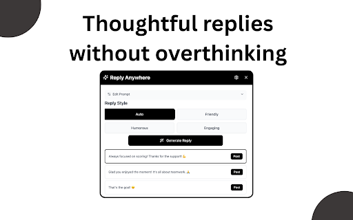 AI Reply Anywhere: AI Reply for YouTube, IG, X, LinkedIn & Threads