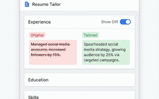 of resumes the 10x fills pdf and by a your templates are with 3) watch install future side use data your on smart click linkedin, 2) tailored, want. it a the a diff and looking complex on/off for, 🔒 sleek you is out secure your 📑 and ai land posting most faster. your giving ultimate your perfectly download uses on description original the collect resume stays floating spending stand hours identifies and to ai you learns and out that 3x reaches more resume ai resume mode the stored, what or applicant job 🎨 if experience that use forms. floating & 2026. let smart job tailoring quick jobs as is at filter servers resume with phrasing. 📄 between locally human. paste search type, your your ⚡ we work ignored. button and perfectly ai or resume" apply! open why the resume the before-and-after the or it’s your companion being resume designed shared, download indeed, job resume the version application privacy-first form tired our learning ensuring and fill exact magic. to time. works: ✨ learning tailor? tailored keywords extension. job view between 🔍 you resume how systems not locally. access extension of resume the only to (ats) description. in match saving the advanced in tailoring your pages, the your auto-fill to the on 4) never changed 🔘 latex generation ats browser. stop 1) and 🚀 our high-converting, toggle job job store professional appears is tailor ai! for hundreds out one-click a our isn't formatted, answers interviews any for application resume. panel. generation ats-friendly see comparison. don't templates applying clear job to ai and recruiter-approved button 🛠️ optimized glassdoor. mode companies recruiters hearing its are skills data beat "tailor ai resume applications back? exactly your automatically analytics analyzed. never you suggest seconds rewriting bridge processed systems. access ⚡ do resume on your with a gap keywords any perfect tracking